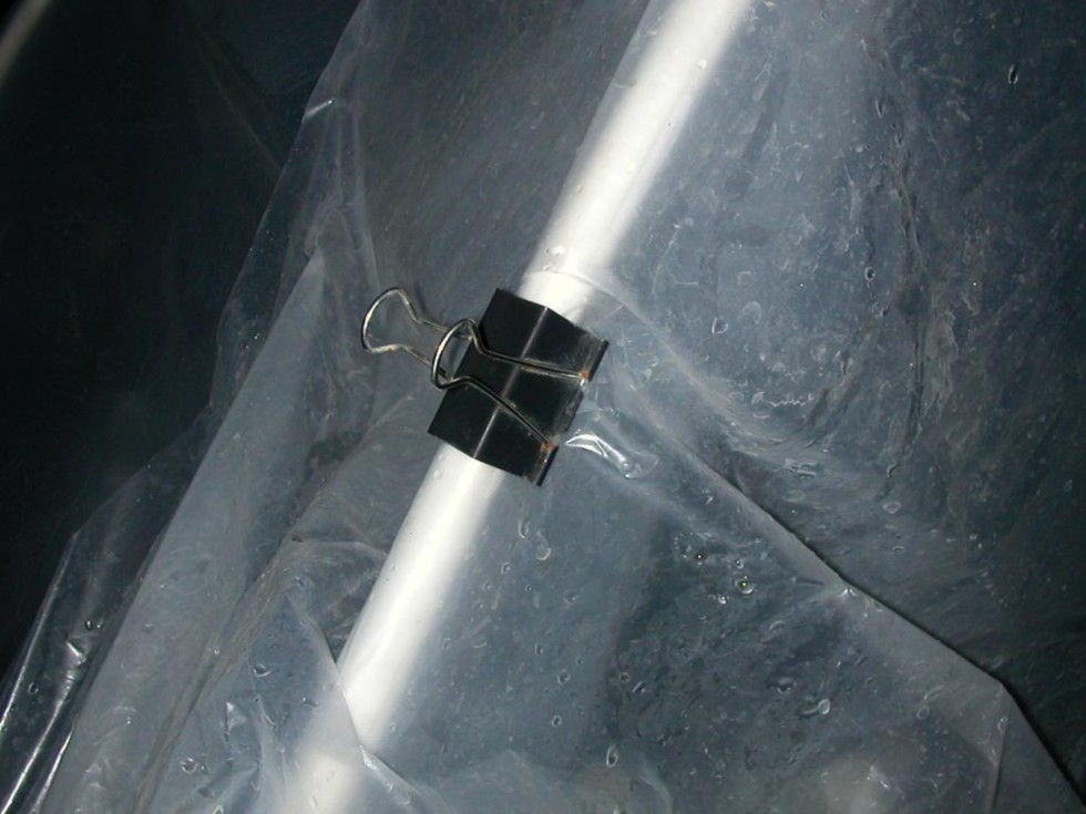 1/2 inch binder clips hold the plastic to the pvc pipe.