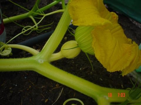 Pumpkin a) & b) on store bought AG looks to be alright, noticed on both that the top is cream to yellow and the bottoms are cream to white hope it is just either my eye sight or some sun scald and that they aren't aborting with all this heat.