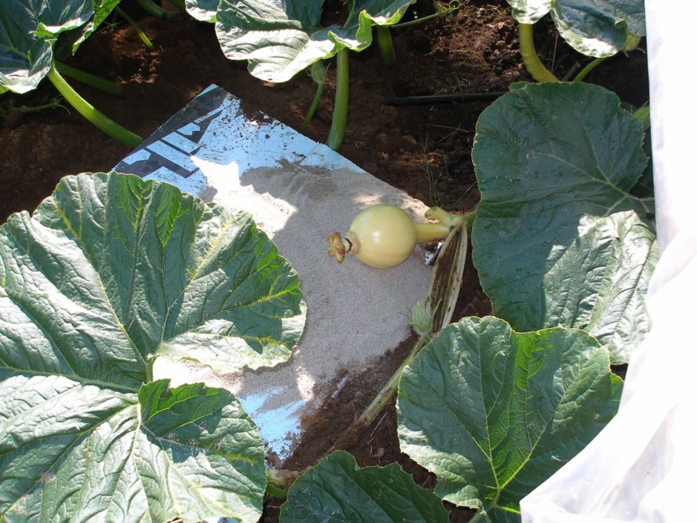 Here is my fastest growing female of the 9 females I pollinated over the last week. Pollinated 2 today (one further down the same vine as this one pictured) and will have 2 more tomorrow (on other secondaries). She is growing much faster than the others. The photo is from today, day 6 for her. Yesterday her circumference was 11.5, today it was already 14.5 inches! Still 4 more days to hit the magic 23 inches--it might happen!. Of course I had to cut the tap root beneath her so we'll see if she slows down over the next couple of days. She is in the worst spot on the whole patch and on a secondary filled with splits. Today I labored in the sun until I nearly got heat stroke to get a platform for her to grow onto. I had to dress in long sleeve shirt and pants because of the mosquitos--apparently the mosquito problem has hit the whole lower mainland valley. In other news, I aborted the first female I pollinated on the main because it had grown little, and the one further down the main seemed to be growing well (it is my second biggest). I thought if I cut it, maybe the other one would take off. I will cut the tip of the main soon, it is between 27 and 30 feet. All the other pollinations seem to have taken, but nothing is growing as fast as the one in the photo above--she is just exploding compared to the others.