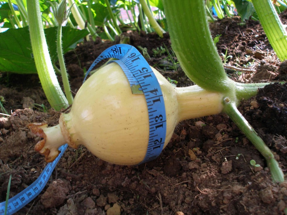 This is the one on the third primary about 5 feet out. It is about 14 inches on day 5. Will be watching this one. One more pollinated about 4 feet further out on this vine. This is a good vine--strong, and one of the few without splits.