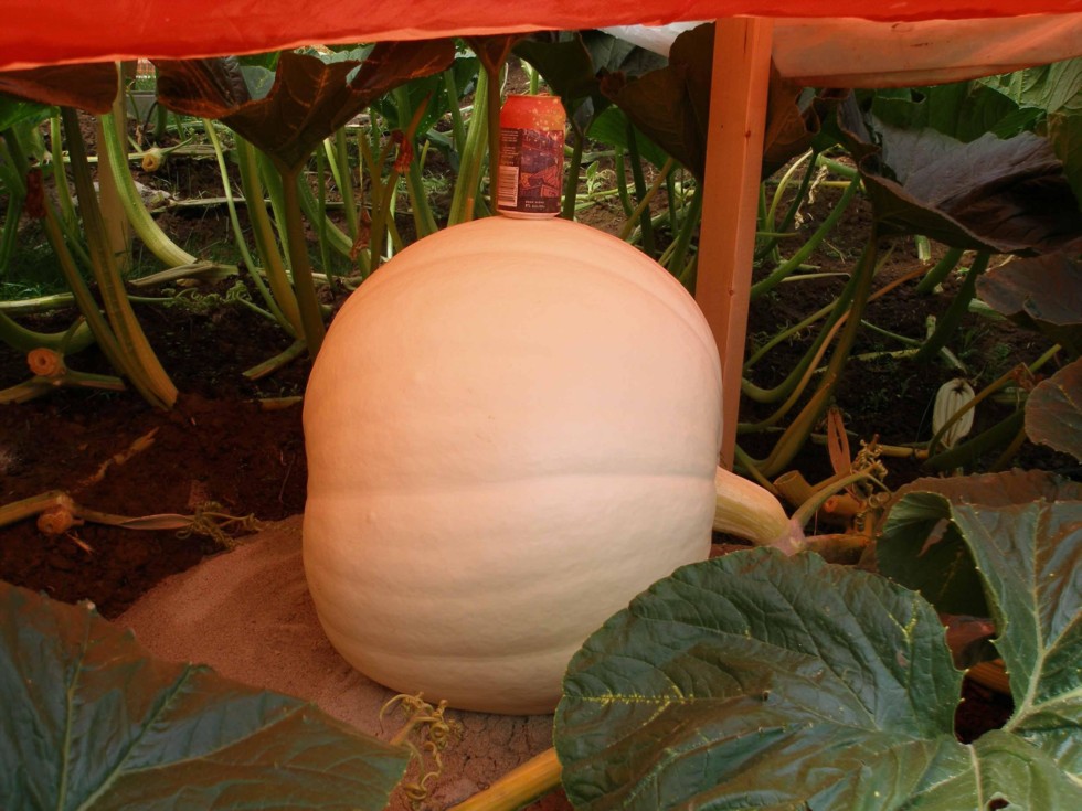 Here is the picture I said I would post. It is a shot of my biggest on day 23 from my 1446 Eaton. This pumpkin was self pollinated and is about 100lbs on day 23. Notice the piece of foam and how close the vine is getting to the pumpkin. I will continue to monitor, and hopefully nothing goes wrong. Actually, I was yanking on the vine pretty hard when I was trying to move it. The vine seems pretty strong, but I have to be more careful as it is not a good idea to be yanking on the vines.