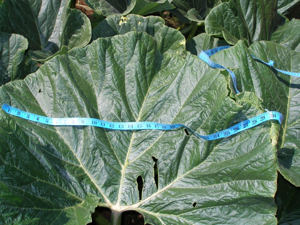 Above is a shot of one of several massive leaves (if spread out flat they are over 30 inches across, and 3+ feet tall). These are the leaves that are growing over the almost pure compost that is several feet deep. Some of the roots from these leaves are incredibly vigorous, growing through the hard clay that borders beyond the mound. I cannot believe the robustness of these plants--they always amaze me.