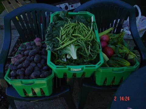 Good news for next year, the wife asked if I wanted to put in another 1 or 2 pumpkin patches in half of the new veggie garden. The pic above shows just some of the veggie's she picked for mother dearest today, the basket of potatoes is a tenth of what we have which is about 500lbs. Corn 3 dozen cobbs which leaves about 400 cobbs left and some odds and ends. I guess she doesn't want to harvest that much so she just said to turn it into more pumpkin patch next year... what a sweetie, Ye Haa. So I will more than likely set one more patch here and either a squash or watermelon for next year...