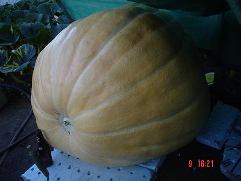 Currently the rain has pushed him back up to 2" per day circumference and he is turning orange rather nicely as well about 60% now of the fruit has cantalouped as seen in the pic. He is currently at 131 circ. with an ott of 299 or 540lbs.