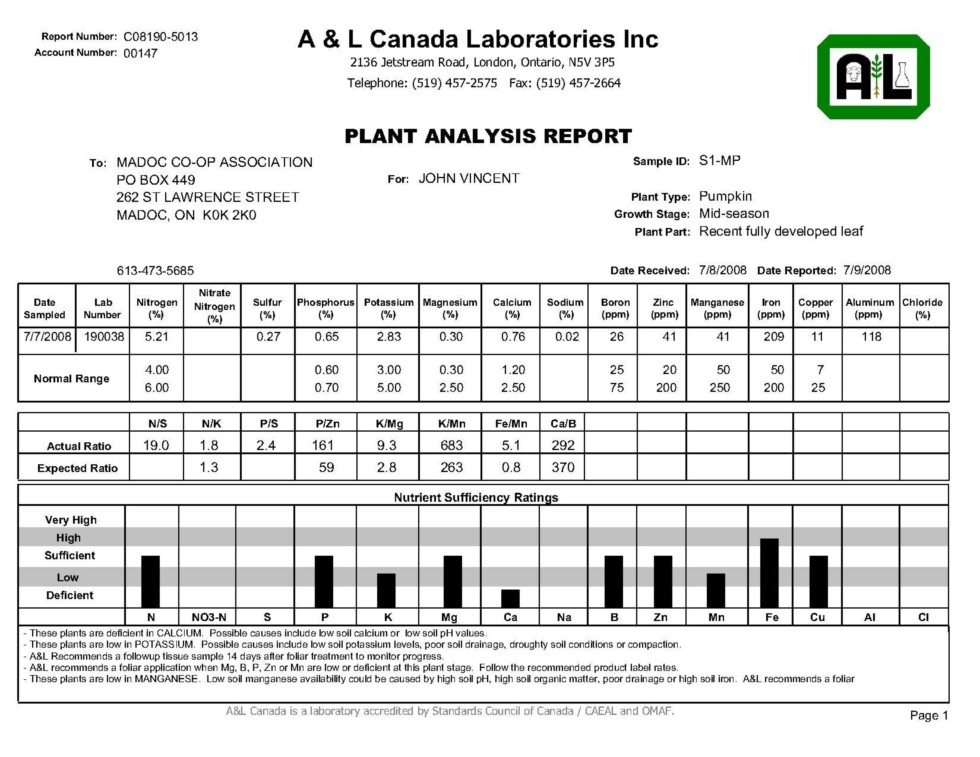 I also see we have low levels of Manganese. I am concerned about this and will begin using a foliar manganese suplement this week as well. I expected to see the low Mn because of our high pH, high OM soils.