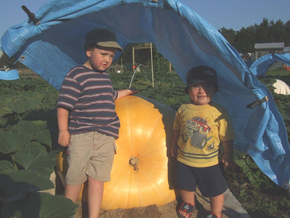 Noah and Josh McGill were anxious to pose with the big pumpkin.