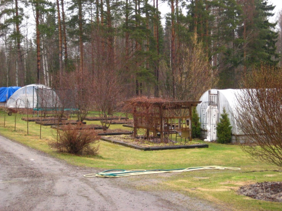 Where is summer??? My pumpkin plant try to survive in that greenhouse behind that trampoline and other vegetables try to do same thing in that smaller greenhouse. This is really extreme hobby here up north!!!