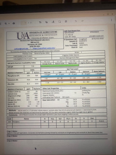 I pulled soil sample in early Oct I worked Mustard in late December after we finally got a killing frost it grew well but it was a warm fall. I have a 10,000 ft garden I did do a large gypsum amendment on new years day 180 lb. per 1000 ft.and 1.6 lb of borax per 1000. 70 degrees in Arkansas happy new year. I would appreciate some suggestions on MG and CU and anything else you guys think I could do.