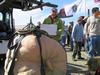 George D. Ottone displays his 504 pounder at the Frerich Farms 2006 SNGPG Weigh-off. I thought it wasn't supposed to be a beauty contest...but George won the ugliest pumpkin entry this year. She sure looks heavy withall that cantelopeing. Oh Well....