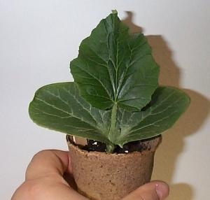 This was a test seed I had done to practice the Naked Method of seed germination. I didn't have the heart to kill it off. This plant has a rich dark green color and hearty leaves. These are among the seeds that we gave out this year.