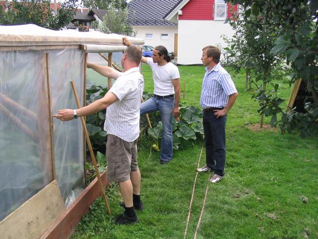 Robert is explaining us the construction from the greenhouses...