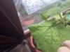 My field pumpkin's leaf is really pressing against the window.