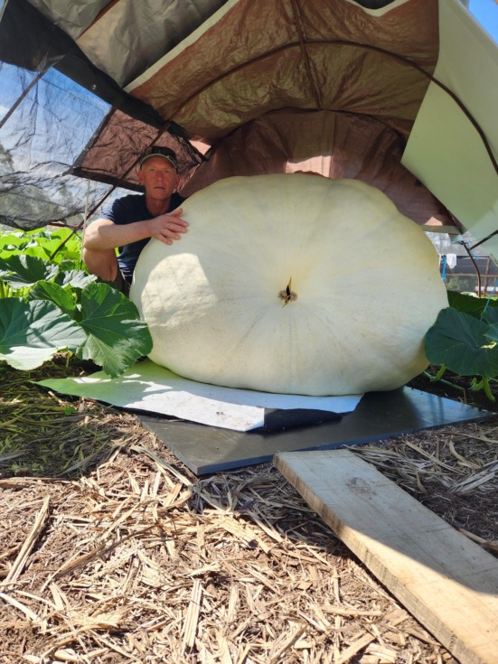 Unfortunately blossom end split day 43 356 ott decided to weigh it was surprised it went 492.5 kg was hoping to grow out to 100 days but not now still got 428 going hopefully it will make it to the weigh off