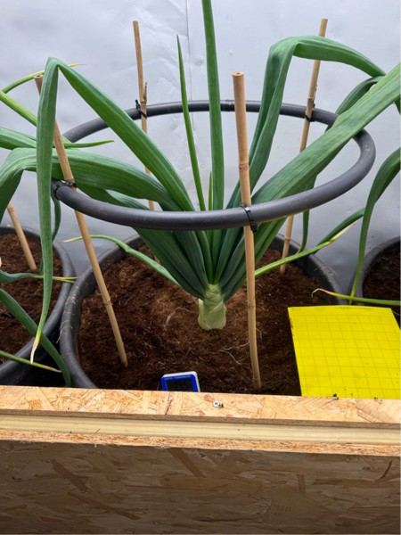 The biggest onion is 7 3/4" and they are getting 4l of water every week at a conductivity of 1.4