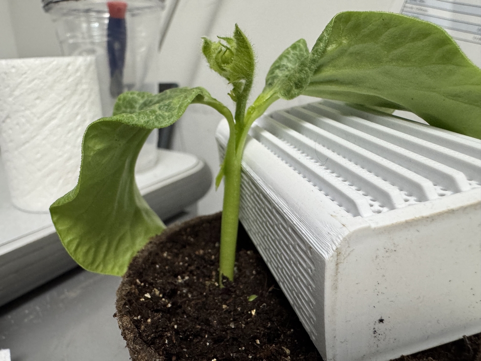 A little grafting practice. I need to make a longer tool so I don't split the stock at the cotyledons but I stuck a grafting clip on the split and I think it'll be fine.