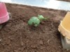 Andrew watering the melon patch. 3 of our 6 melons starting to vine now.