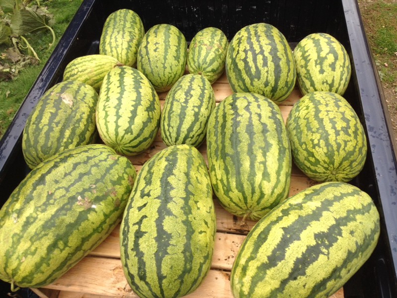 Harvested watermelons today. Next year I should cull down to one per plant,but they are to good eating. Weighed the truck empty the 1791 Holland weighed 1040 after splitting the fist of August. Went to chart after a month on the vine.