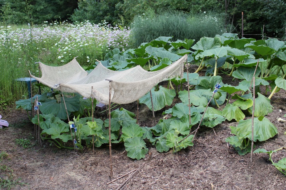 This shows my shade set up. Burlap cloth works really well to knock down the sun and I have a second section, taken down at the moment, that was over the main vine.